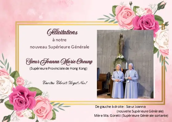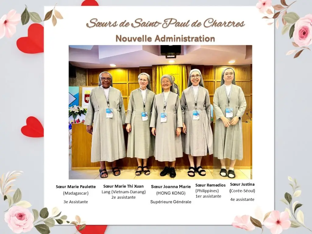 Le 18 septembre 2025 sous la présidence de Mère Maria Goretti Lee, Supérieure Générale en charge, les membres di capitulaires du Chapitre Général de la Congrégation des Sœurs de Saint-Paul de Chartres ont procédé à l’élection de la Supérieure Générale. A été élue à cette charge : pour un premier mandat de six ans.