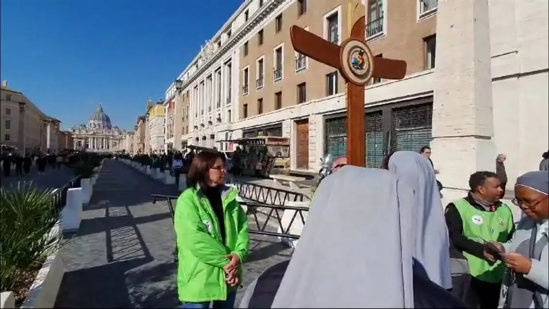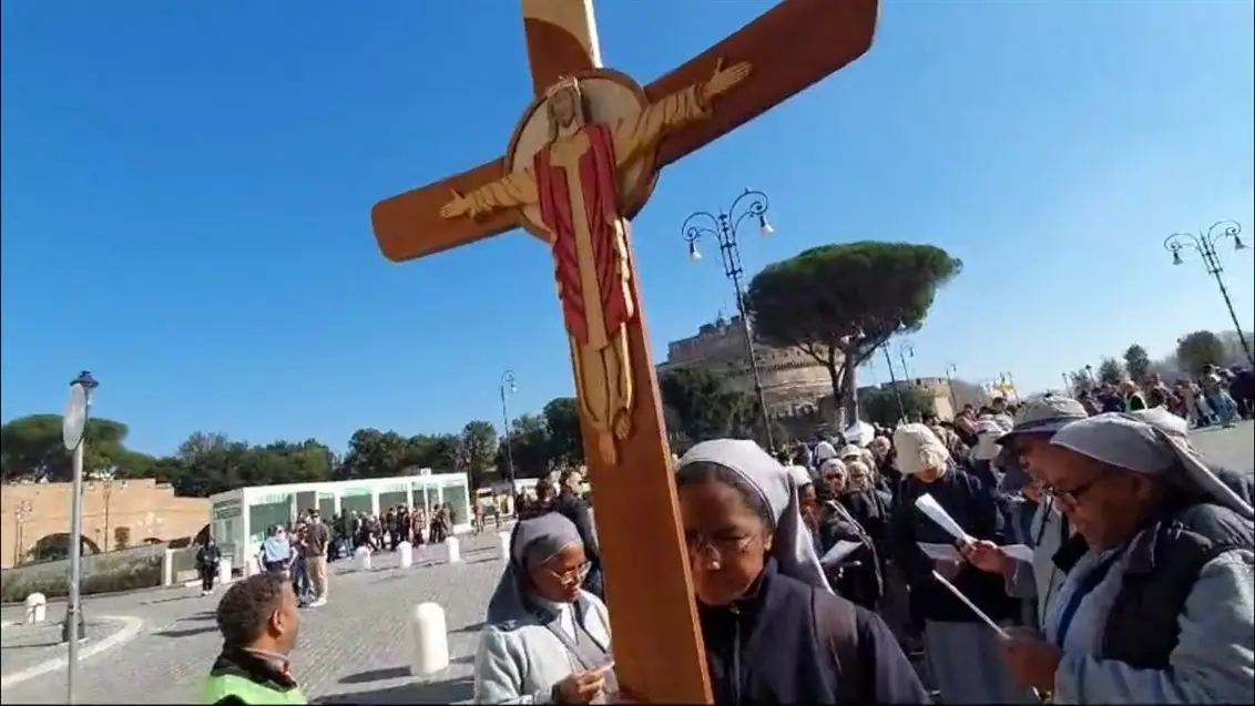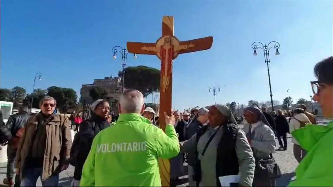 La communauté des SPC de Rome s’est rassemblée pour un pèlerinage fervent à la Porte Sainte de la basilique Saint-Pierre, partant de la place près du château Saint-Ange et empruntant la Via della Conciliazione.